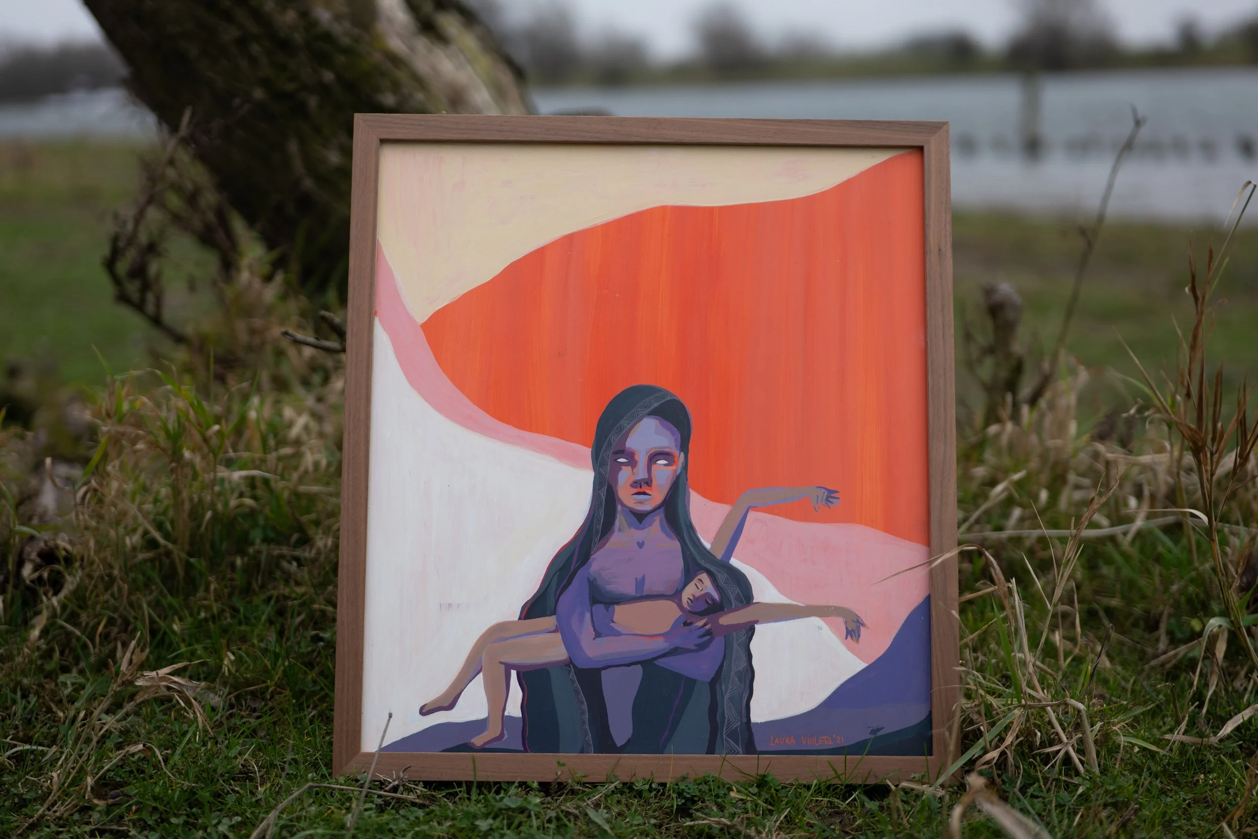 framed in walnut wood w/ museum glass